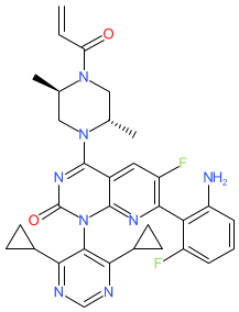 | 7-(2-amino-6-fluorophenyl)-1-(4,6-dicyclopropylpyrimidin-5-yl)-4-[(2S,5R)-2,5-dimethyl-4-prop-2-enoylpiperazin-1-yl]-6-fluoropyrido[2,3-d]pyrimidin-2-one |