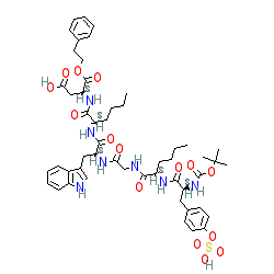 Canonical SMILES CCCCC(C(=O)NCC(=O)NC(C(=O)NC(C(=O)NC(C(=O)OCCc1ccccc1)CC(=O)O)CCCC)Cc1c[nH]c2c1cccc2)NC(=O)C(NC(=O)OC(C)(C)C)Cc1ccc(cc1)OS(=O)(=O)O