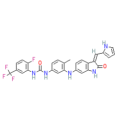 | 1-[2-fluoro-5-(trifluoromethyl)phenyl]-3-[4-methyl-3-[[(3Z)-2-oxo-3-(1H-pyrrol-2-ylmethylidene)-1H-indol-6-yl]amino]phenyl]urea |
